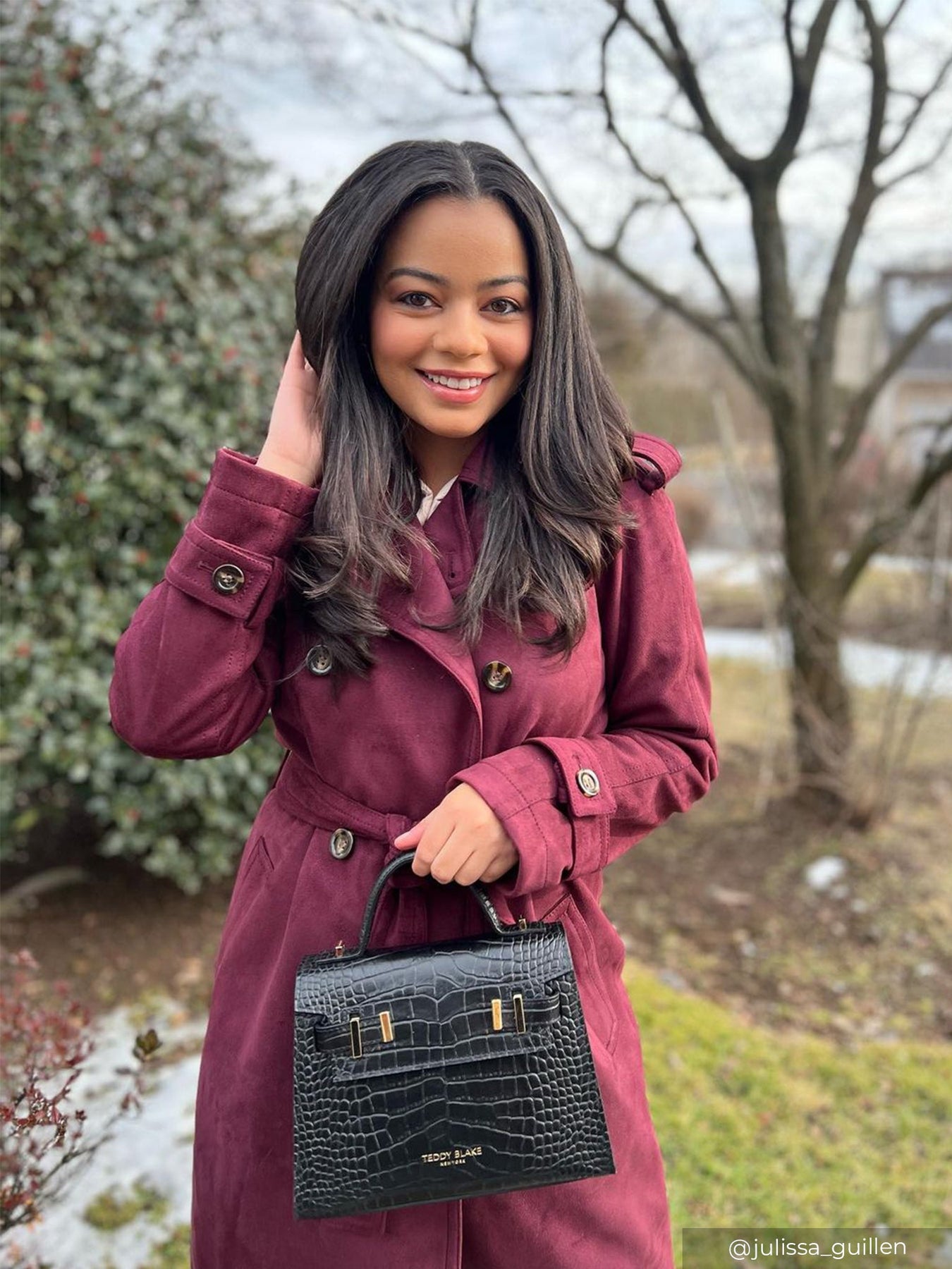 The New Ava by Teddy Blake signs a modern twist to an iconic chic design. Crafted by expert artisans in Italy with croco embossed calf skin. The style features a single round handle with a flap closure that opens to reveal a soft suede interior and well though compartmentalization with side pockets included. The Ava bag can take you from a ladies luncheon to an evening out without missing a beat when it comes to style and elegance.