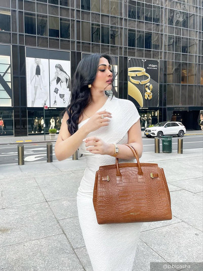 The new Gigi handbag encapsulates Teddy Blake's modern-classic appeal. Made in Italy from croco embossed calf skin the semi structured silhouette is reworked to fit an on-the-go lifestyle. The detachable strap allows it to be styled over the shoulder and the roomy interior can fit all your daily essentials &more.