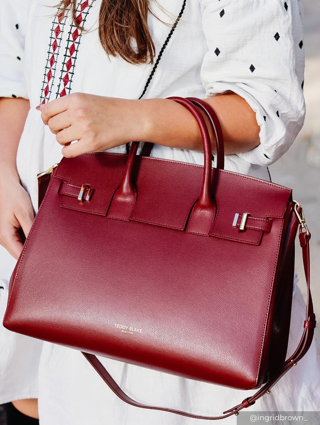 The new Gigi handbag encapsulates Teddy Blake's modern-classic appeal. Made in Italy from semi rigid grained calf leather the semi structured silhouette is reworked to fit an on-the-go lifestyle. The detachable strap allows it to be styled over the shoulder and the roomy interior can fit all your daily essentials &more.