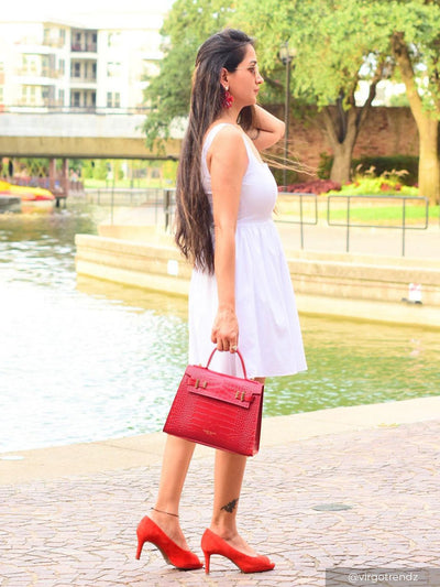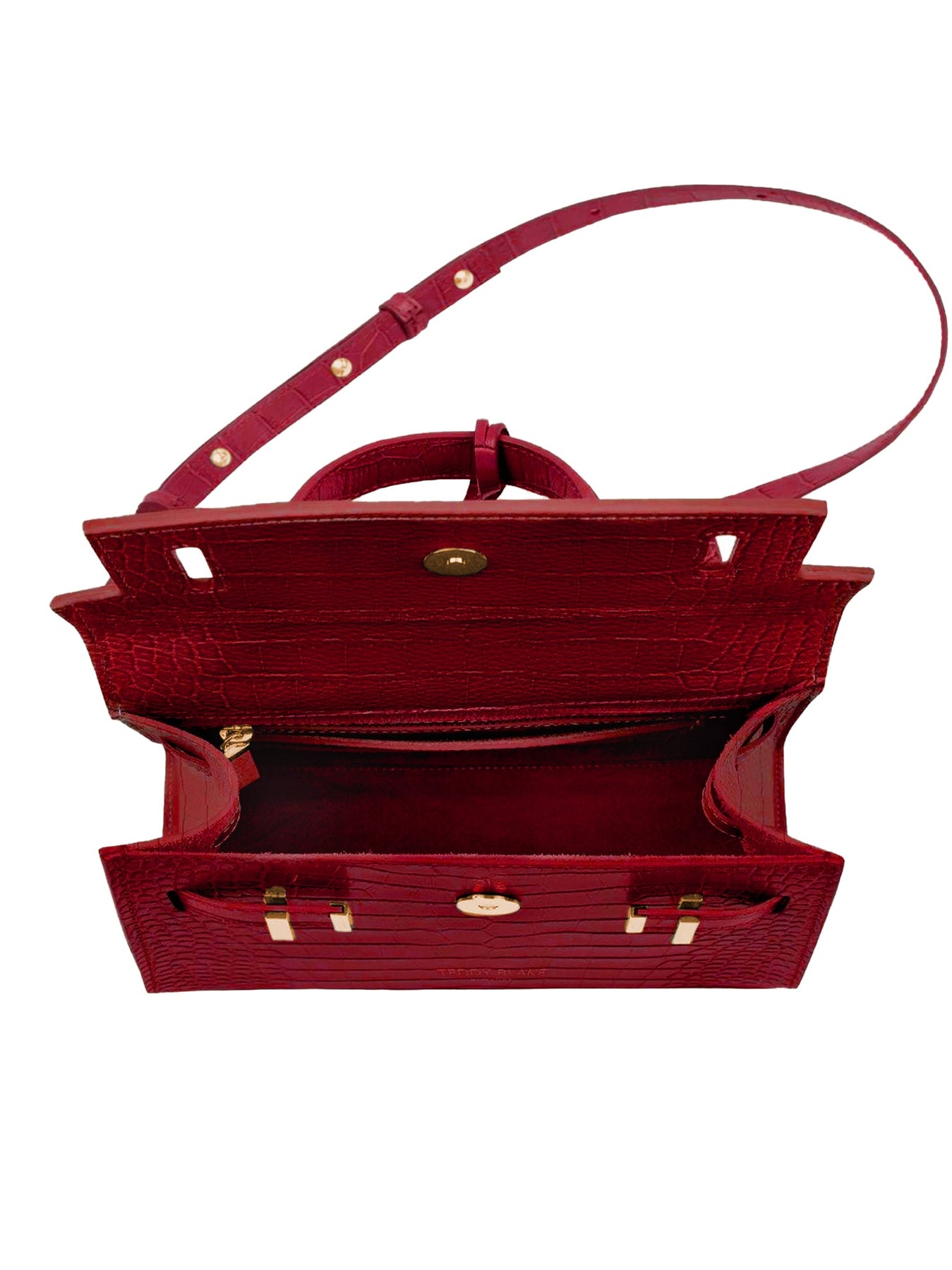 The New Ava by Teddy Blake signs a modern twist to an iconic chic design. Crafted by expert artisans in Italy with croco embossed calf skin. The style features a single round handle with a flap closure that opens to reveal a soft suede interior and well though compartmentalization with side pockets included. The Ava bag can take you from a ladies luncheon to an evening out without missing a beat when it comes to style and elegance.