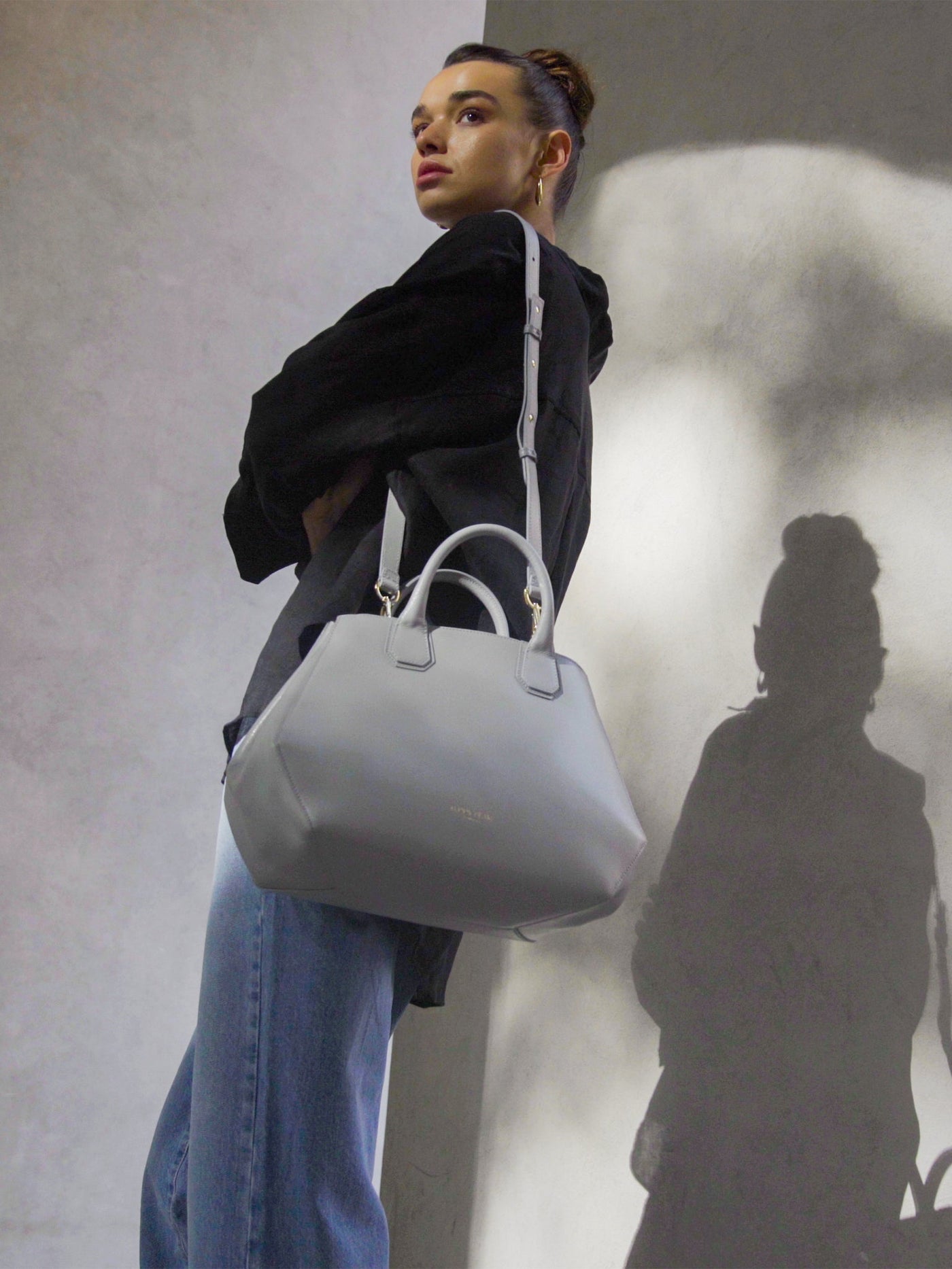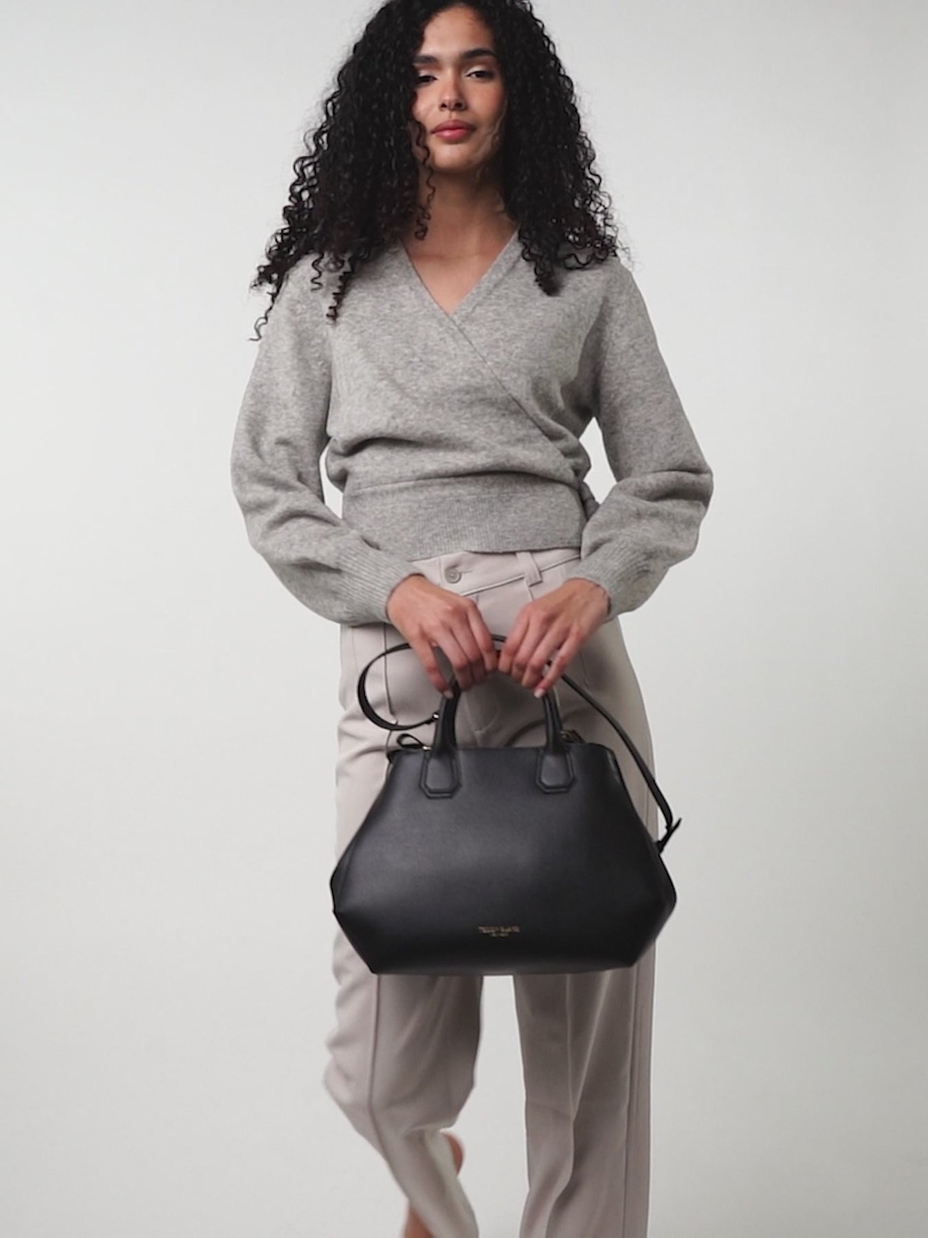 The geometrical shape of the New Vera bag adds an intricate touch to a classy look. Crafted in Italy the structured silhouette is made with semi-rigid grain leather to withstand time and everyday wear. The Vera top handle bag features 2 large zipper pockets and a soft elegant interior making it the perfect choice for everyday wear.