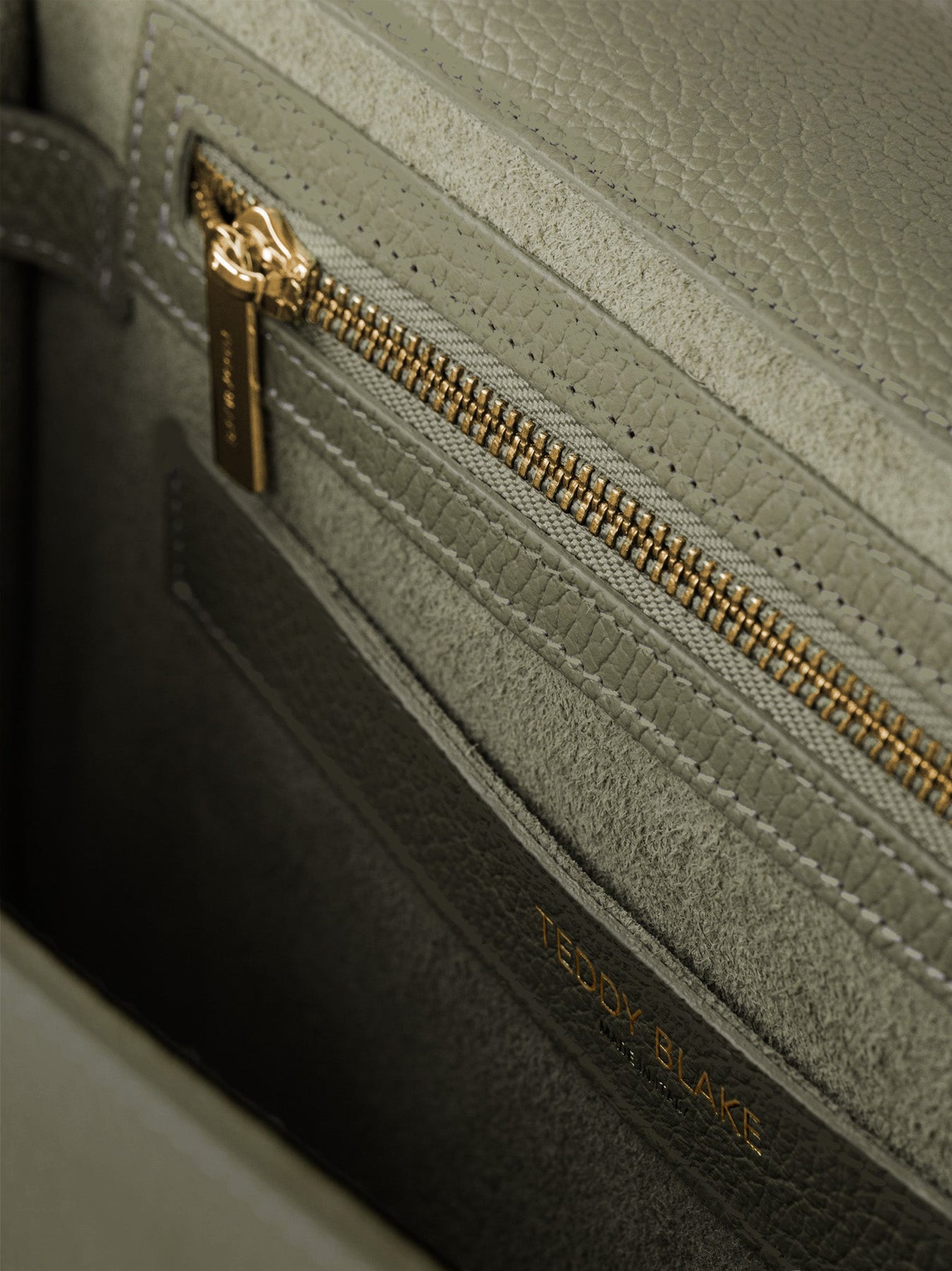 The New Ava by Teddy Blake signs a modern twist to an iconic chic design. Crafted by expert artisans in Italy with grained calf leather. The style features a single round handle with a flap closure that opens to reveal a soft suede interior and well though compartmentalization with side pockets included. The Ava bag can take you from a ladies luncheon to an evening out without missing a beat when it comes to style and elegance.