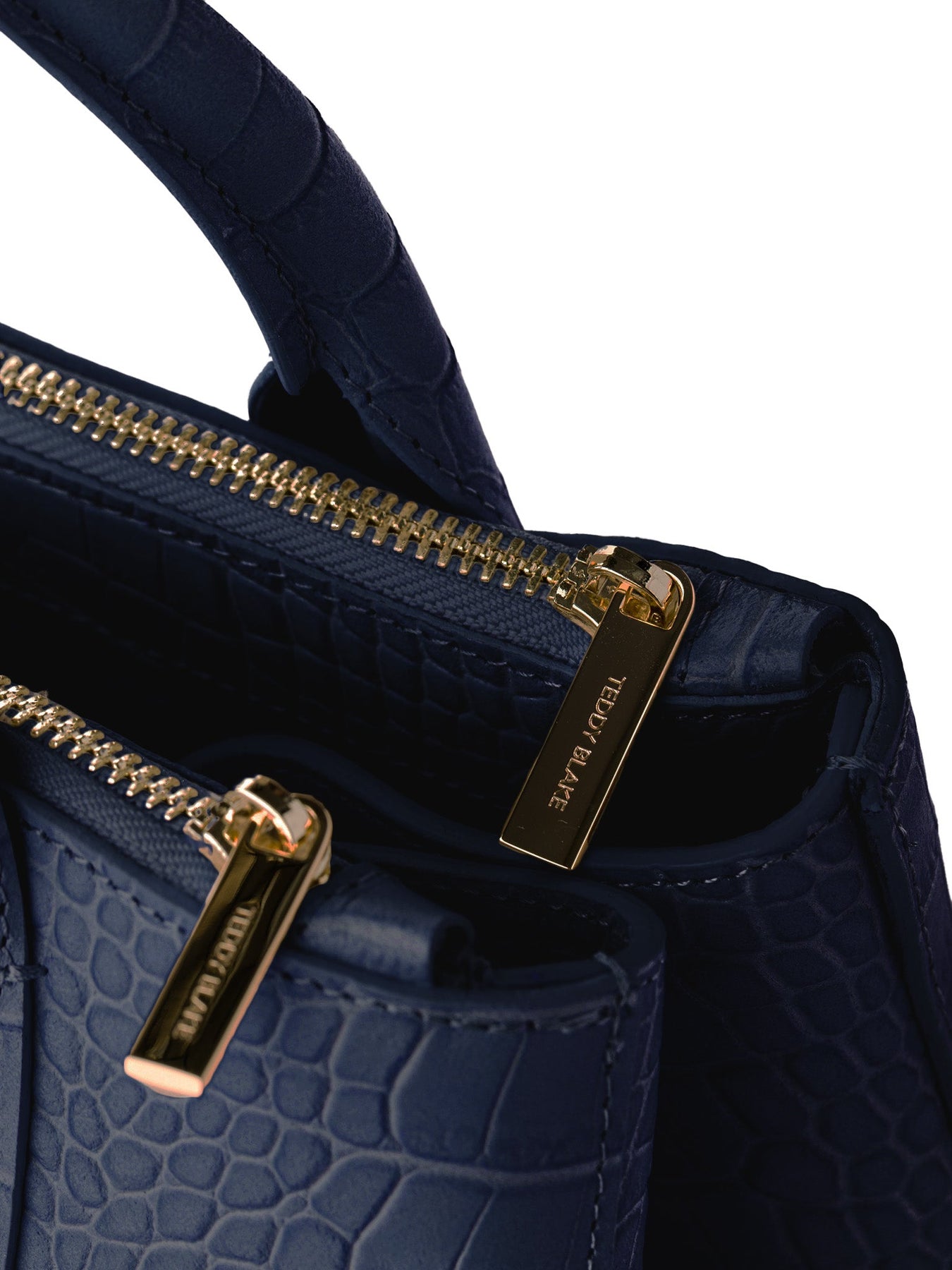 The design of the Bella channels both classic&modern lines making it the perfect companion for today's woman. The sharp and structured shape is crafted in Italy from croco embossed calf skin. Featuring an organized suede interior with a central compartment and full-length zipper side pockets, the sides can be expanded for extra space. From shoulder to handle the Bella satchel can make an effortless transition from desk to dinner.