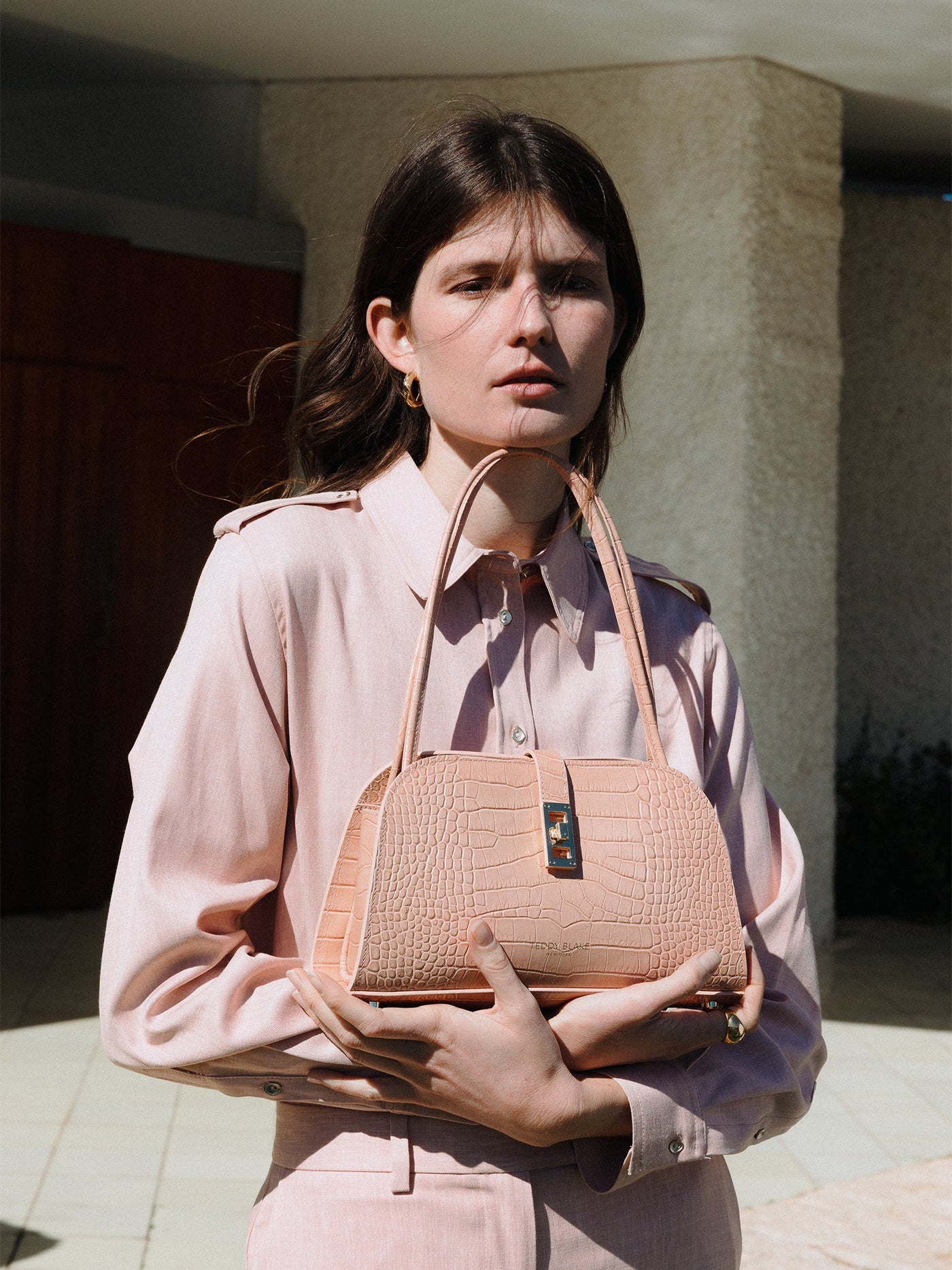 Croco embossed leather with matching trim