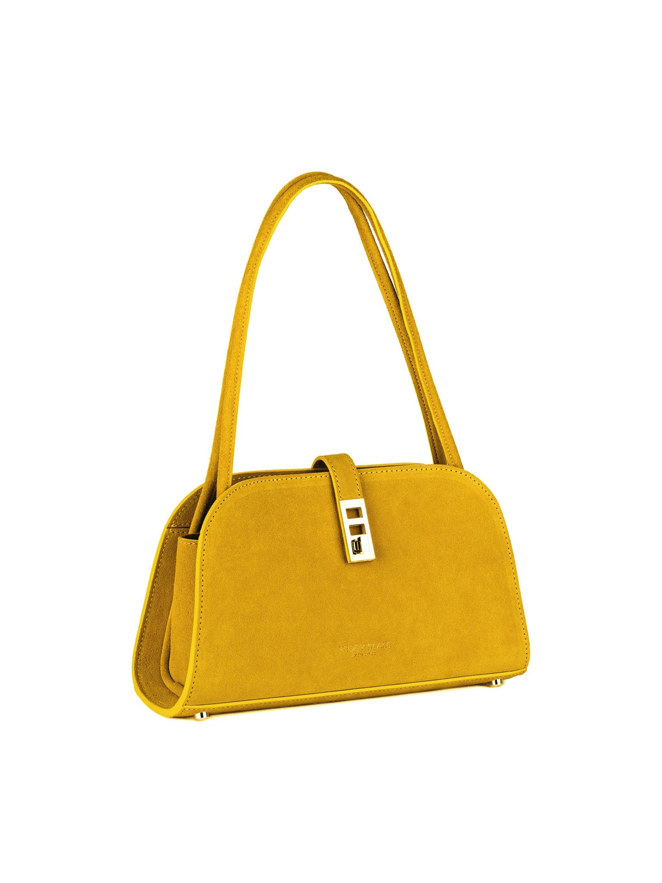 Channeling the elegant lines of classic bags the new Dana is both practical and playful. Made in Italy from elegant suede calf leather the design features an adjustable turn-lock closure adorned with gold detailing. The interior is lined with suede and is equipped with slip pockets for carrying your essentials. Carry the Dana and compliment your attire with elegance.