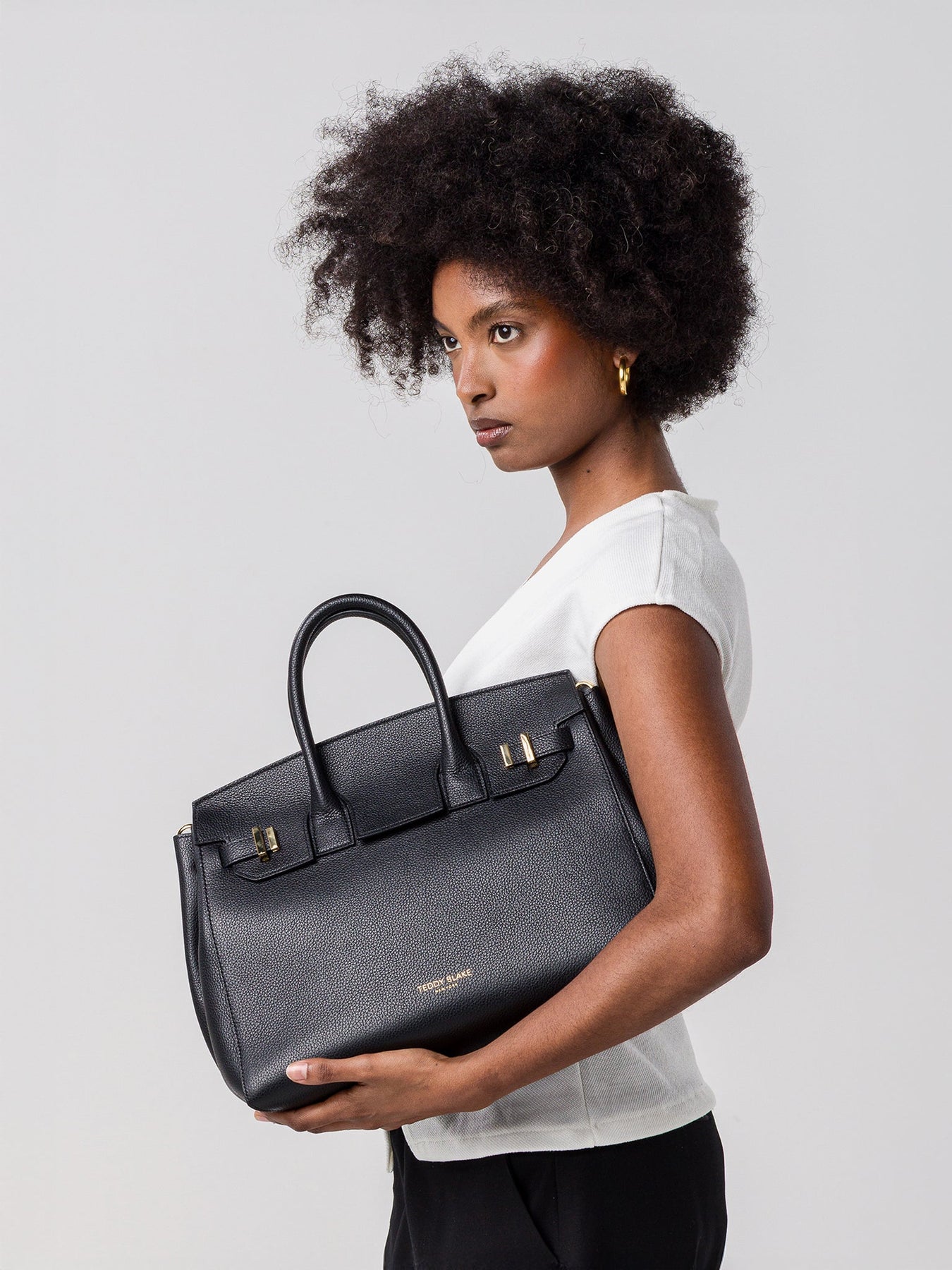 The new Gigi handbag encapsulates Teddy Blake's modern-classic appeal. Made in Italy from soft pebbled leather the semi structured silhouette is reworked to fit an on-the-go lifestyle. The detachable strap allows it to be styled over the shoulder and the roomy interior can fit all your daily essentials &more.