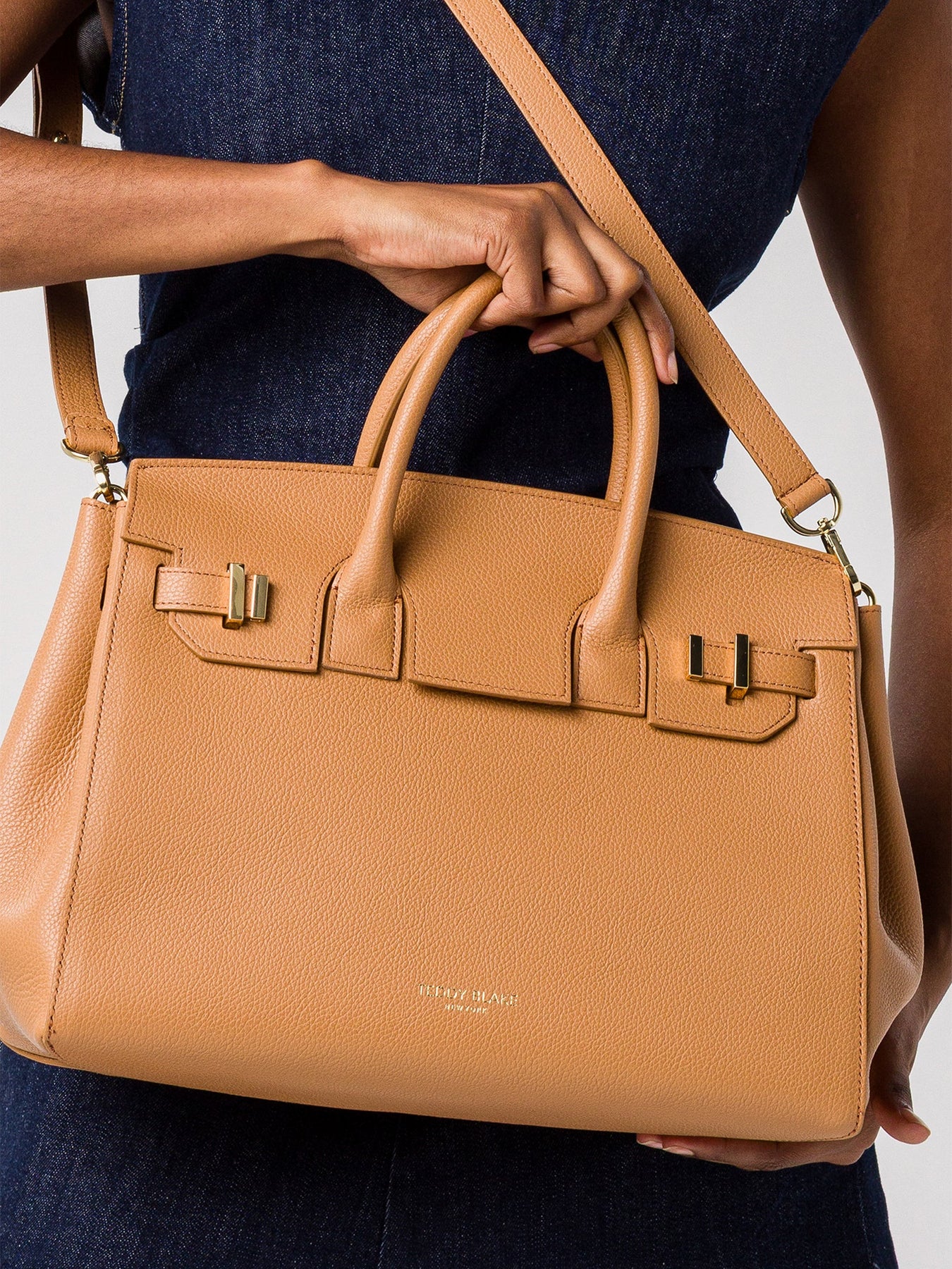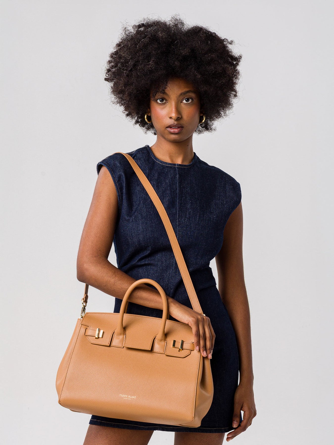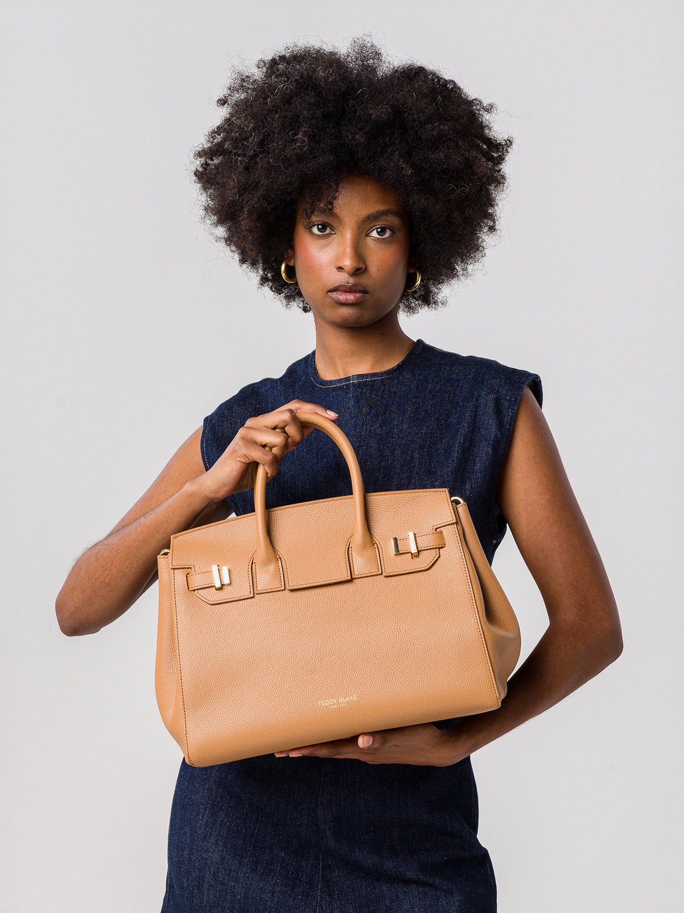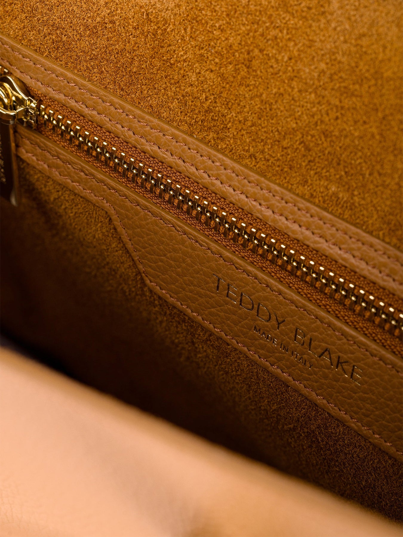 The new Gigi handbag encapsulates Teddy Blake's modern-classic appeal. Made in Italy from soft pebbled leather the semi structured silhouette is reworked to fit an on-the-go lifestyle. The detachable strap allows it to be styled over the shoulder and the roomy interior can fit all your daily essentials &more.