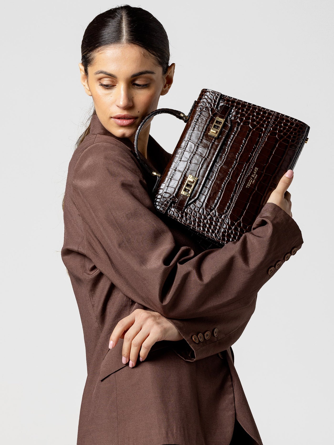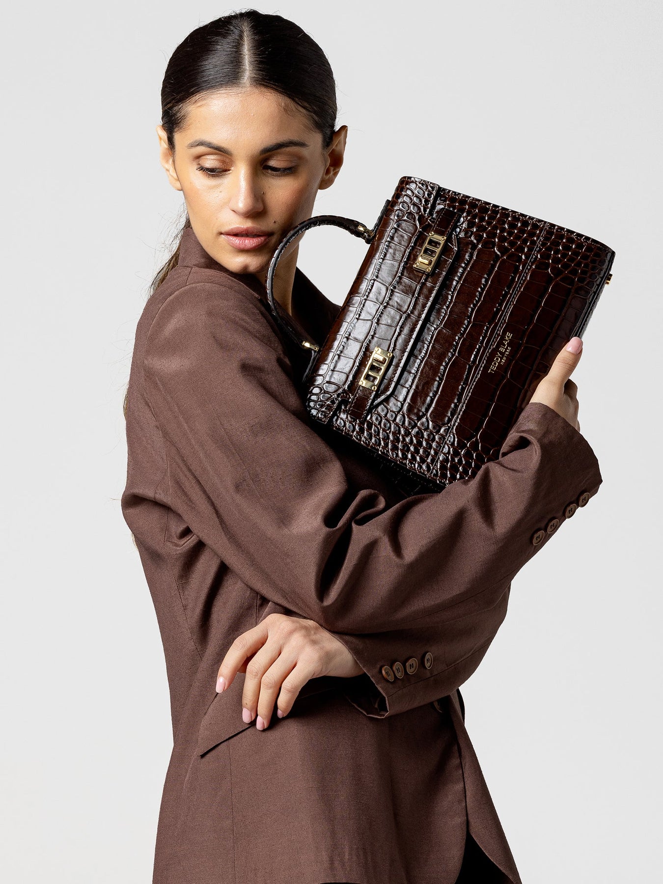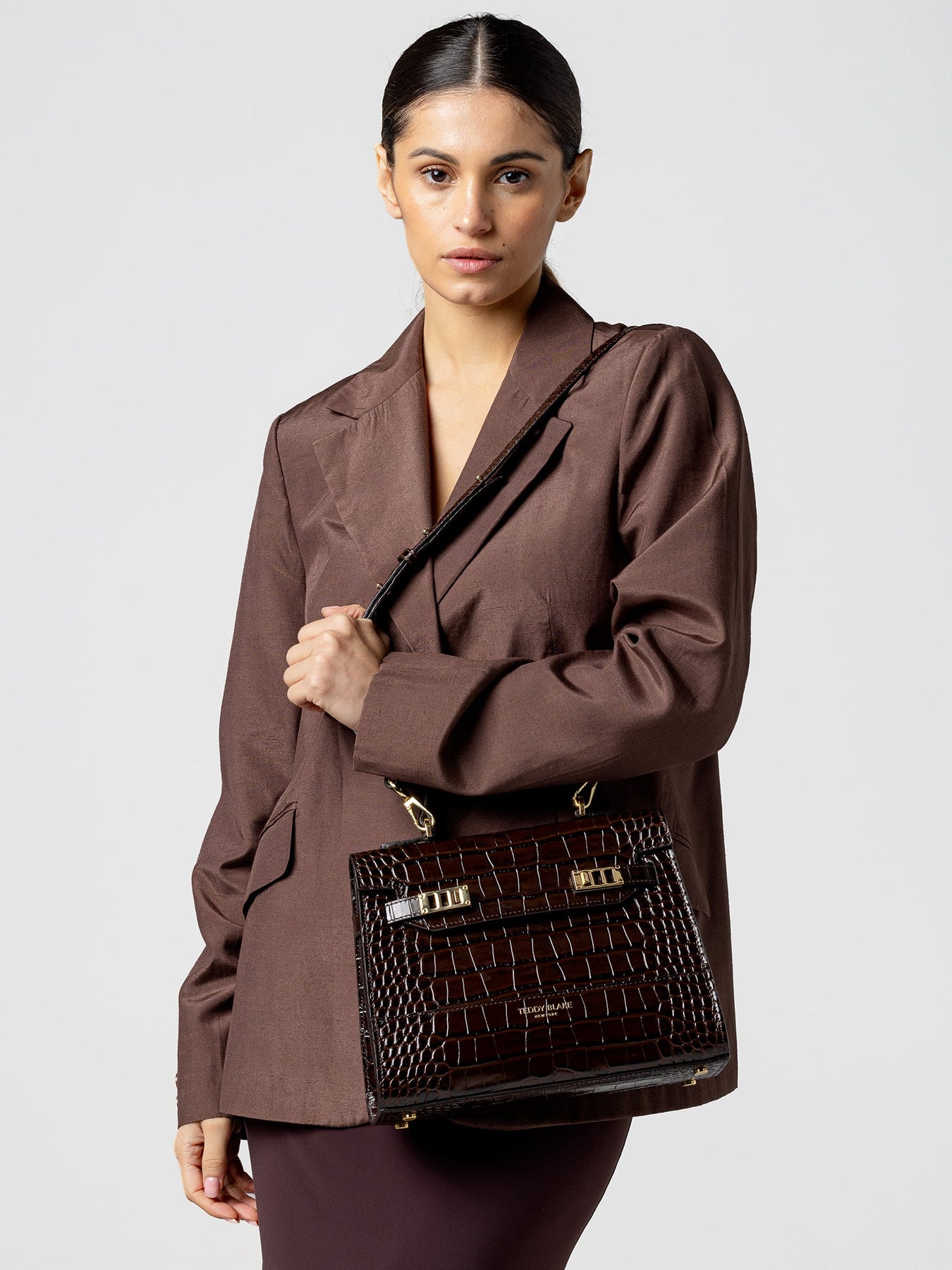 The stunning Kim shoulder bag is perfect for adding a dash of chic to any ensemble. Made in Italy from croco embossed calf skin, this versatile piece has an intriguing look, that will complete any style in a memorable way. This style can be used as a handbags or a shoulder bag, taking you from day to evening with ease.