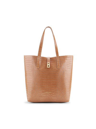 Embrace effortless elegance with the Nina Tote, meticulously handcrafted in Italy to perfection. Its spacious suede interior offers ample room to organize your belongings, ensuring practicality without compromising on style. The turncock closure provides added security while lending a sophisticated finish. Whether you're navigating through a bustling city or jet-setting across continents, this chic tote exudes understated luxury and versatility, making it an essential companion for every occasion.